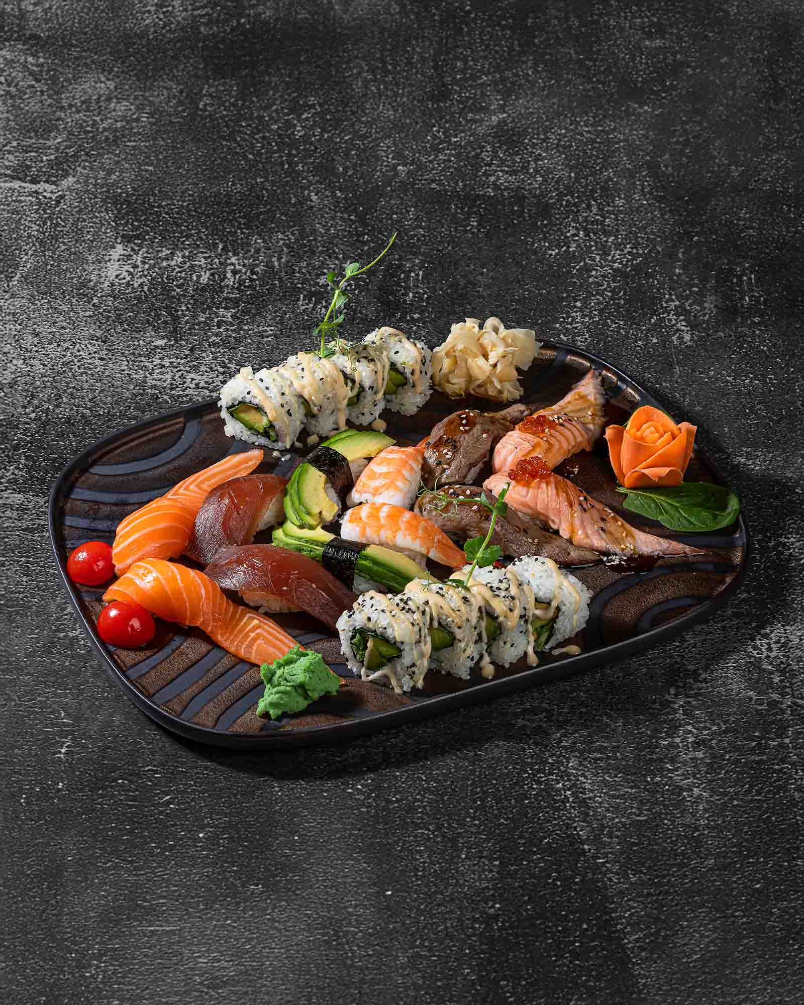 Eine sorgfältig zusammengestellte Auswahl aus Nigiri und Rolls – mit frischem Fisch, cremiger Avocado und perfekt temperiertem Reis für ein ausgewogenes Geschmackserlebnis.